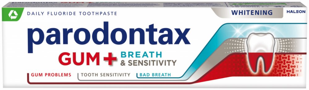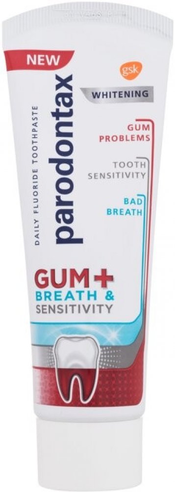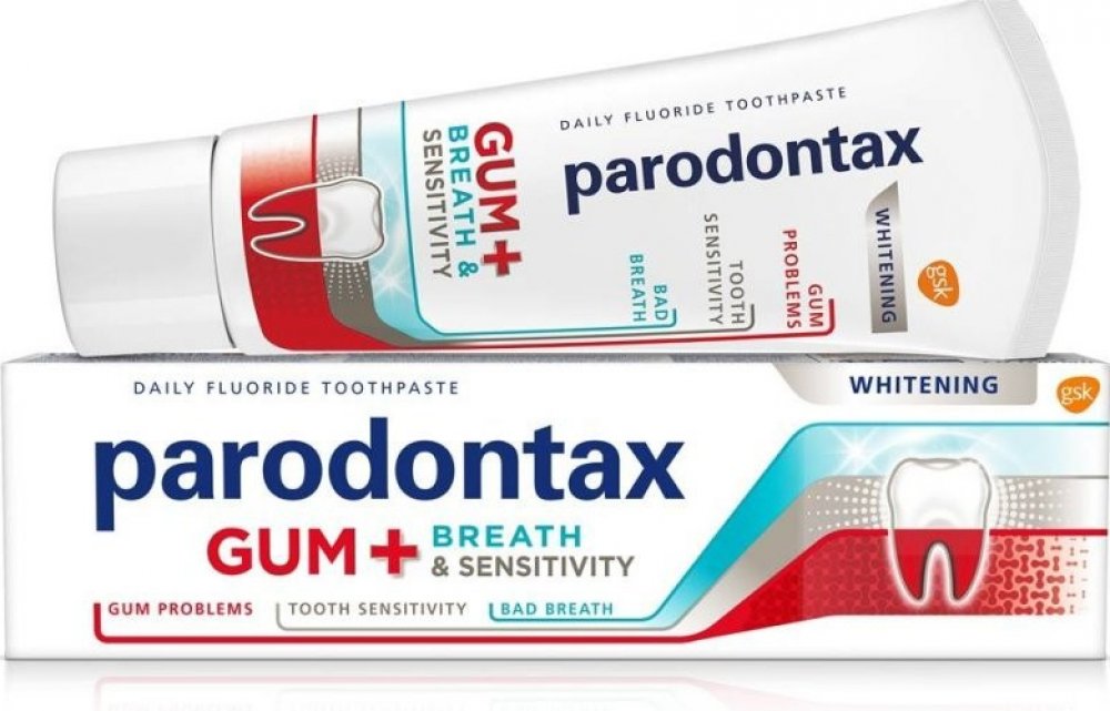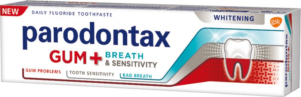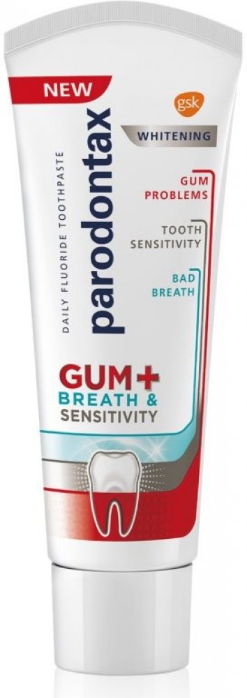 Parodontax zubní pasta na dásně, dech a citlivé zuby. Velmi efektivní zubní pasta, která pomůže s dodržením pravidelné zubní hygieny. Její používání je ideální prevence proti vzniku paradentózy. Péče o chrup bude díky používání této zubní pasty jednodušší a výsledky uvidíte nejen vy.