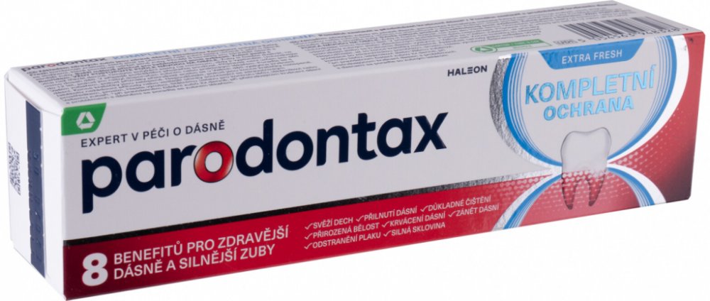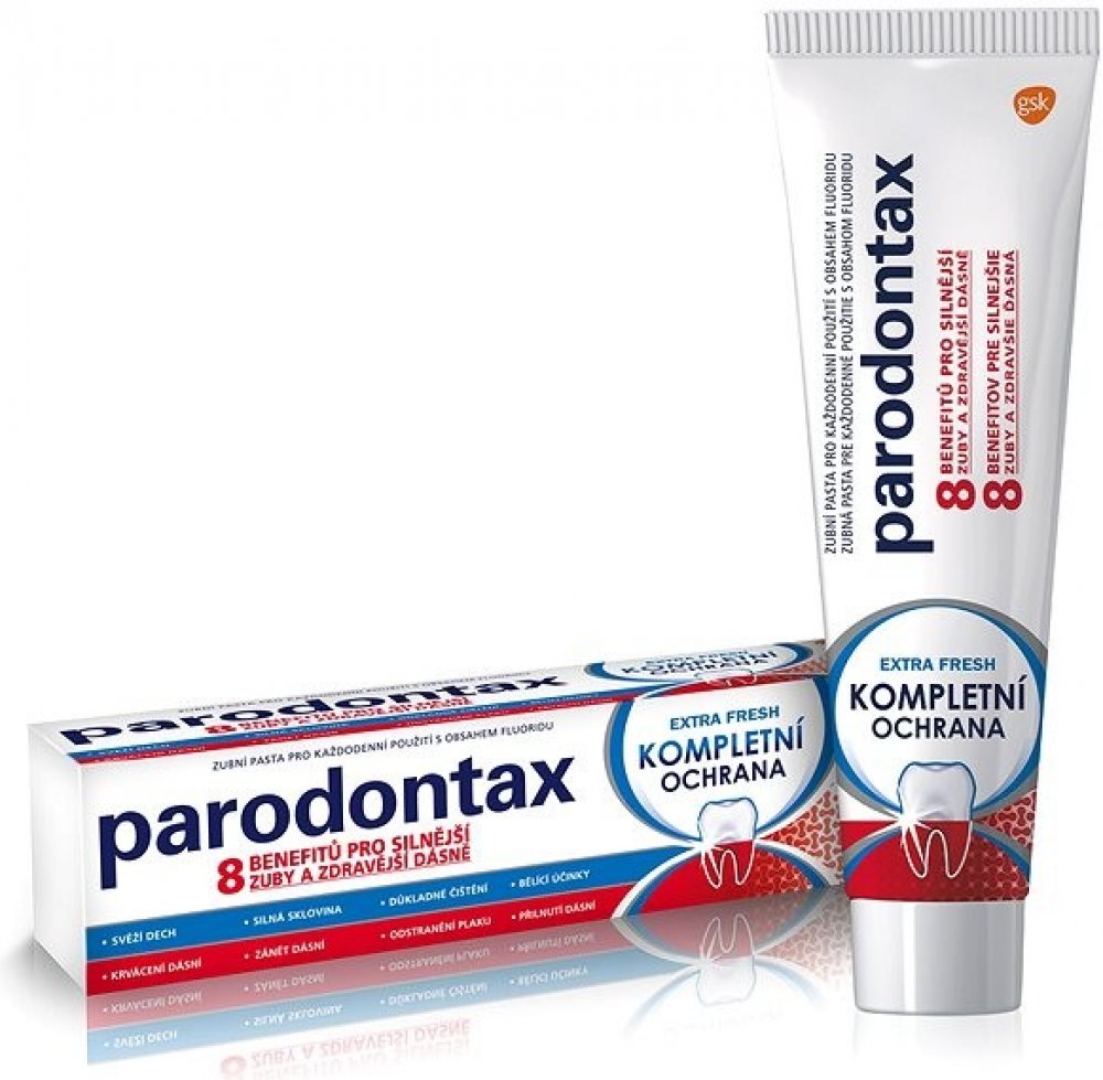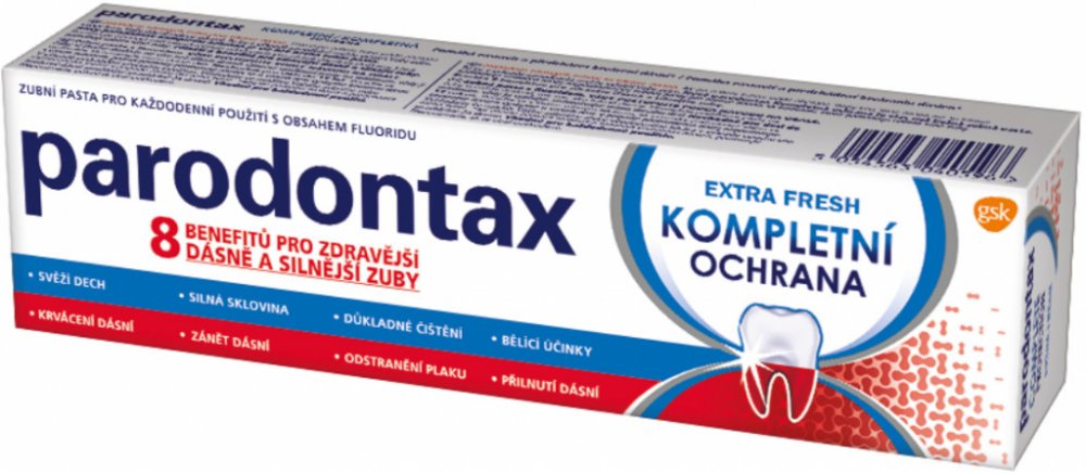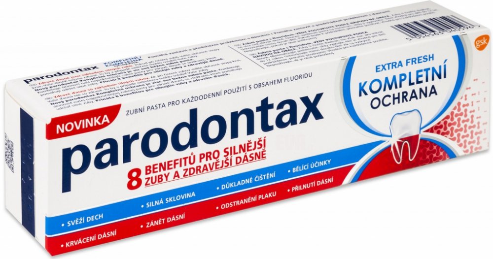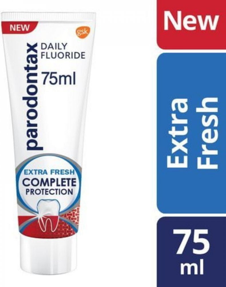 Zubní pasta Parodontax Kompletní ochrana Extra Fresh odstraňuje více zubního plaku než běžná zubní pasta a zanechává pocit čistých svěžích úst.