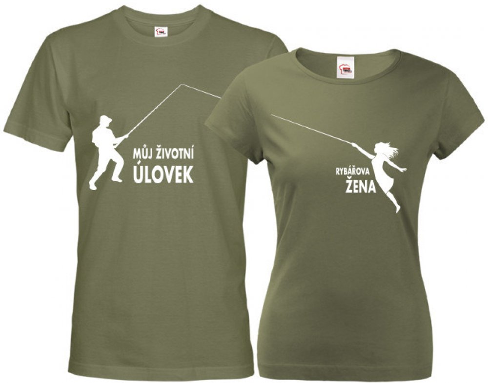 Triko pro každý správný rybářský pár. Potisk na pánském triku se skvěle doplňuje s dámským - Můj životní úlovek - Rybářova žena. Trika udělají radost v každé rybářské rodině.