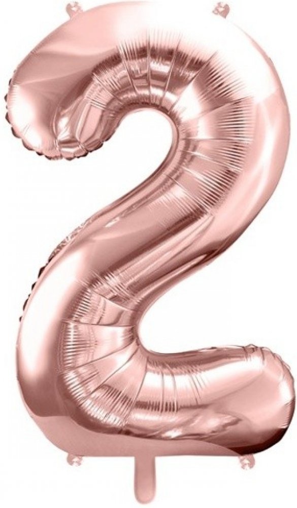 Fóliový balónek ve tvaru číslice 2 růžově zlaté barvy je dominantní prostorovou dekorací. Využijete jej pro oslavy narozenin, jubileí nebo firemních výročí.