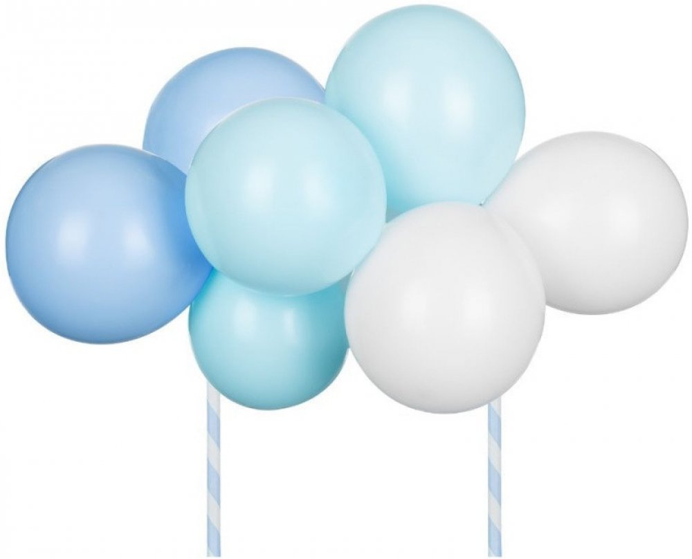Ozdobte svůj dort stylově s naším zápichem do dortu ve tvaru balónků! Tento krásný zápich je ideální pro oslavy narozenin, svátky nebo jakoukoli jinou příležitost. S kombinací bílých, světle modrých a tmavších modrých balónků přidá váš dort jedinečný a veselý vzhled.