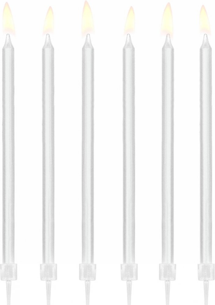 PartyDeco Dlouhé svíčky na dort BÍLÉ 14 cm