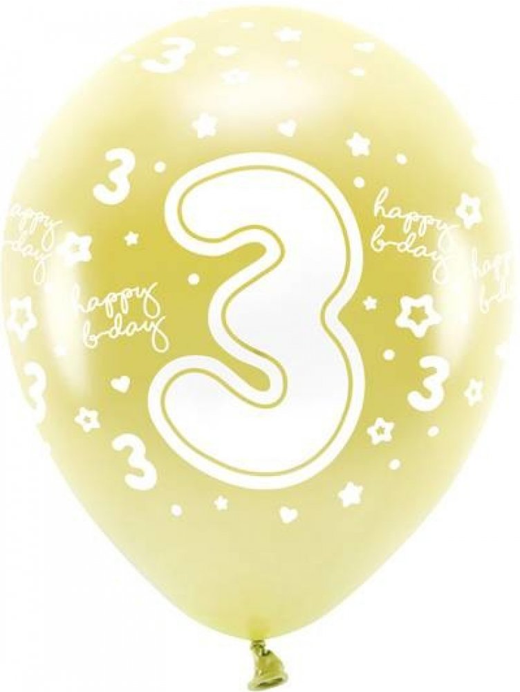 PartyDeco Eco balónky zlaté číslo 3 (6 ks) - PartyDeco Eco balónky zlaté číslo 3 (6 ks) z kategorie Dortisimo.cz | Potřeby pro párty a oslavy | Balónky pro párty a oslavy koupíte na Dortisimo.cz. EAN: 5904555002630