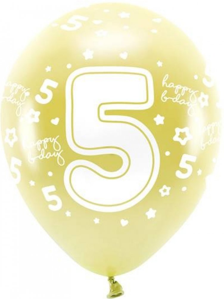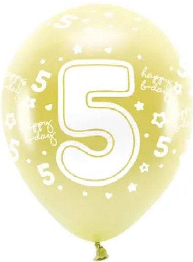 PartyDeco Eco balónky zlaté číslo 5 (6 ks) - PartyDeco Eco balónky zlaté číslo 5 (6 ks) z kategorie Dortisimo.cz | Potřeby pro párty a oslavy | Balónky pro párty a oslavy koupíte na Dortisimo.cz. EAN: 5904555002692