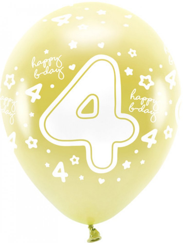 PartyDeco EKO balónky metalické číslo4 SVĚTLE ZLATÉ 33 cm