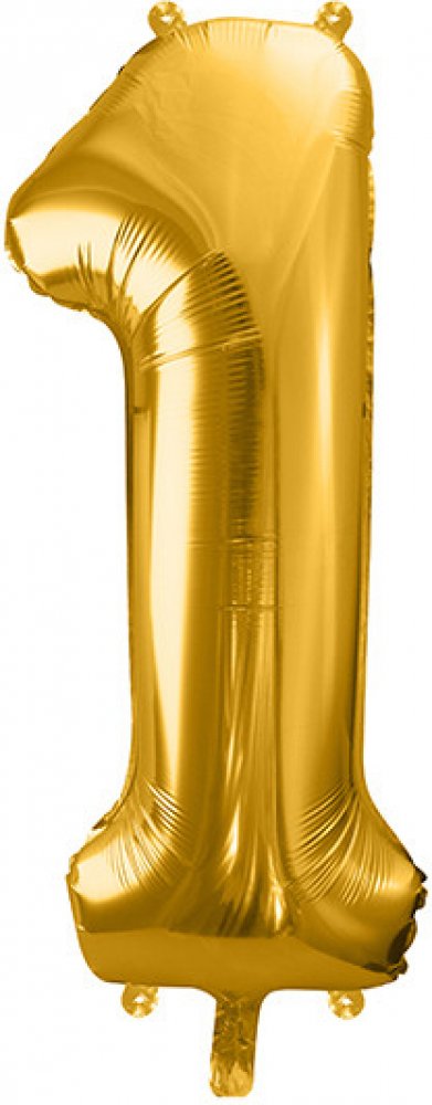 Nafukovací fóliový balónek ve tvaru čísla 1 - Hitem posledních let jsou oblíbené balónky ve tvaru číslic, které oživí celou narozeninovou oslavu a zajisté potěší oslavence. Narozeninová oslava může začít! Balónek je vyroben ze zlaté fólie. Na horní i dolní straně balónku jsou očka na přivázání. Výška balónku: 86 cm VAROVÁNÍ: Vhodné pro děti od 8 let. Děti se mohou prasklými či vyfouknutými balónky...