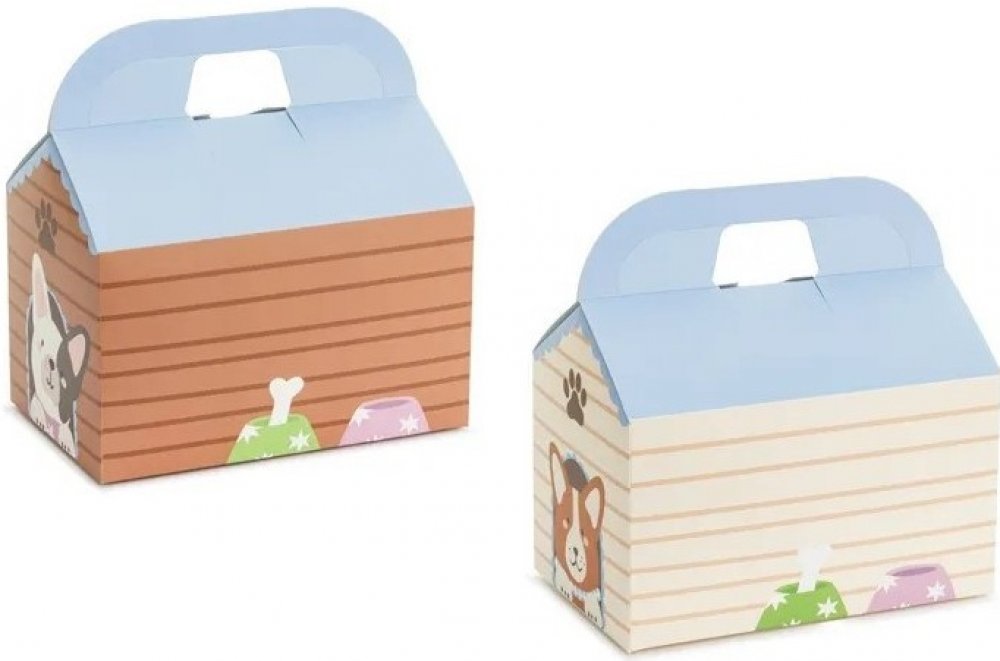 Dekorativní papírové krabičky na dorty ve tvaru psích boudiček