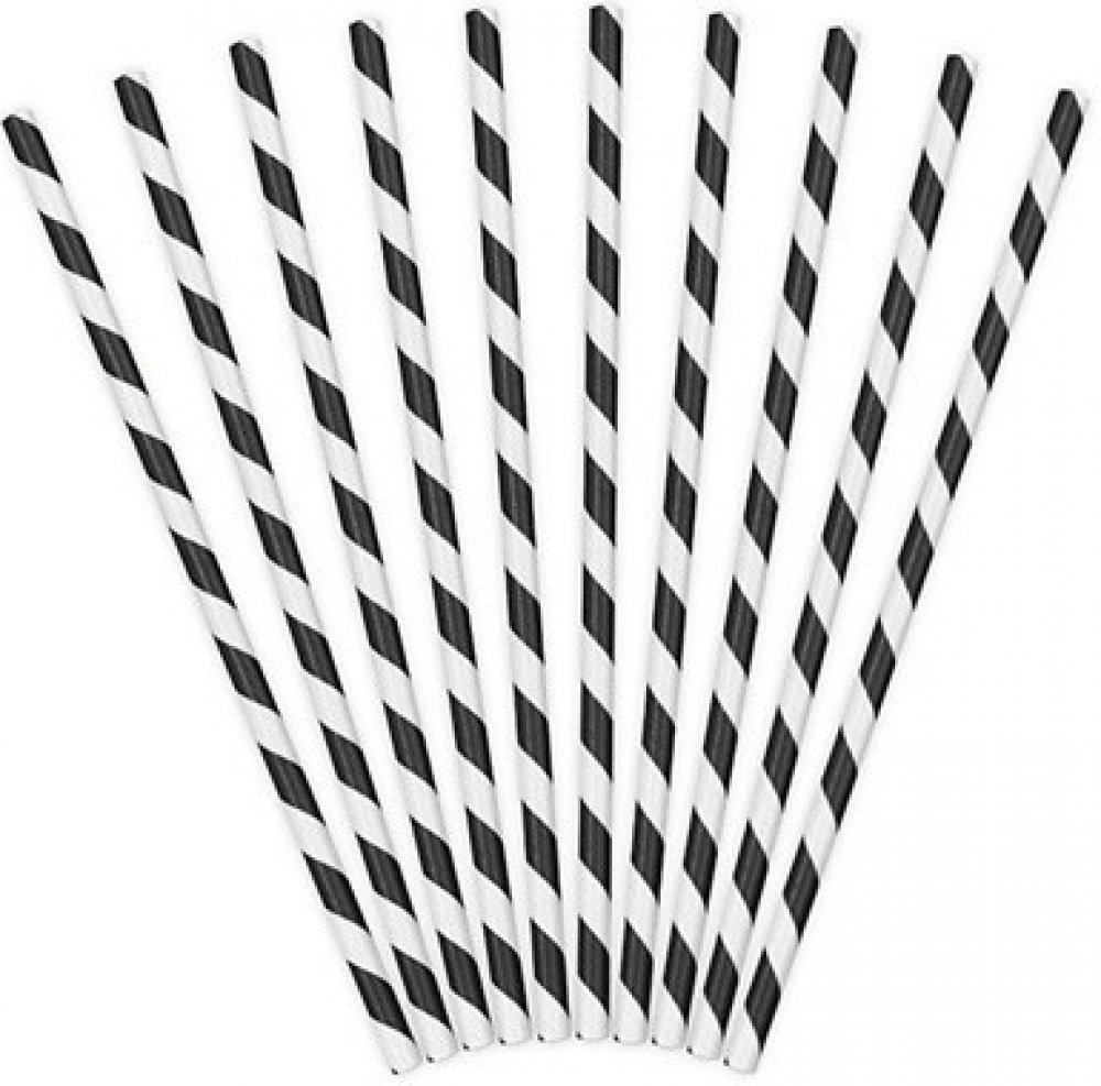 PartyDeco Papírová brčka s proužky černá 10 ks