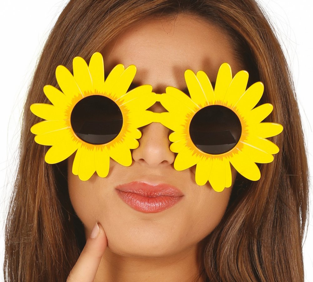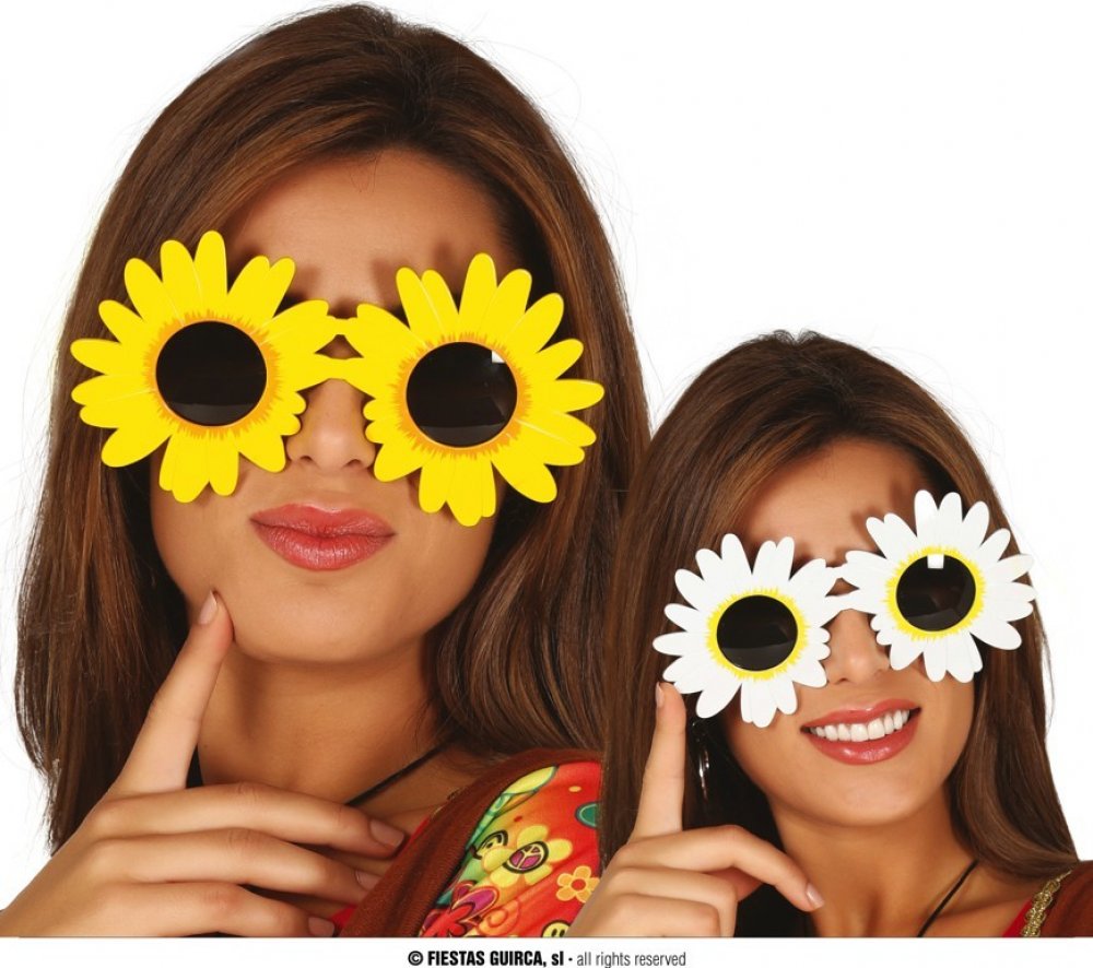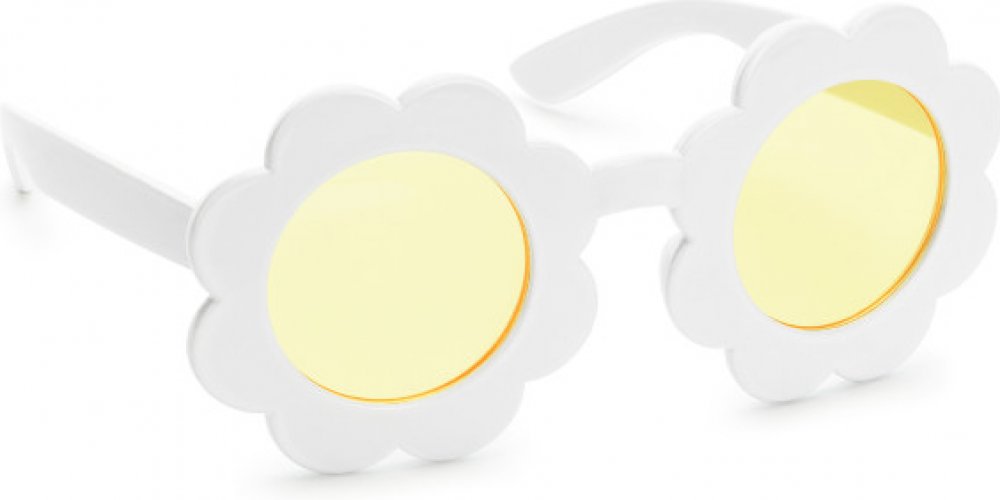 Dětské plastové brýle se žlutými sklíčky ve tvaru kytičky, které se hodí na jakoukoliv tematickou party, oslavu narozenin nebo jako doplněk ke kostýmu.