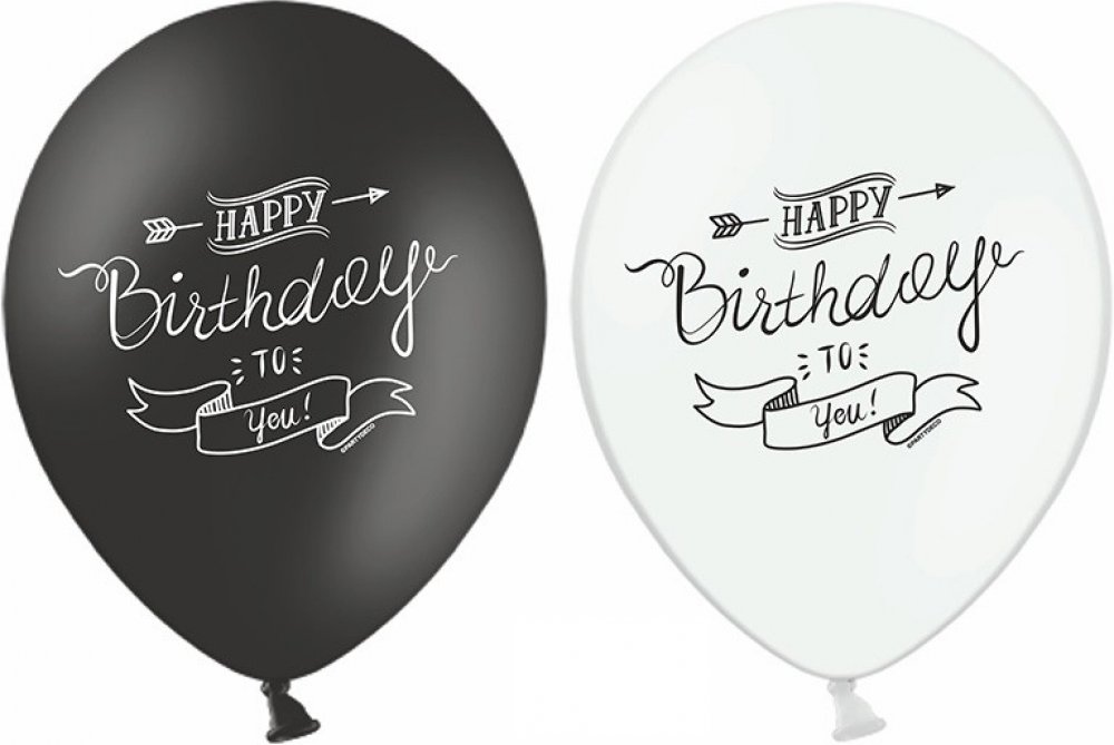 PartyDeco Pastelový balónek Happy birthday bíly nebo černý