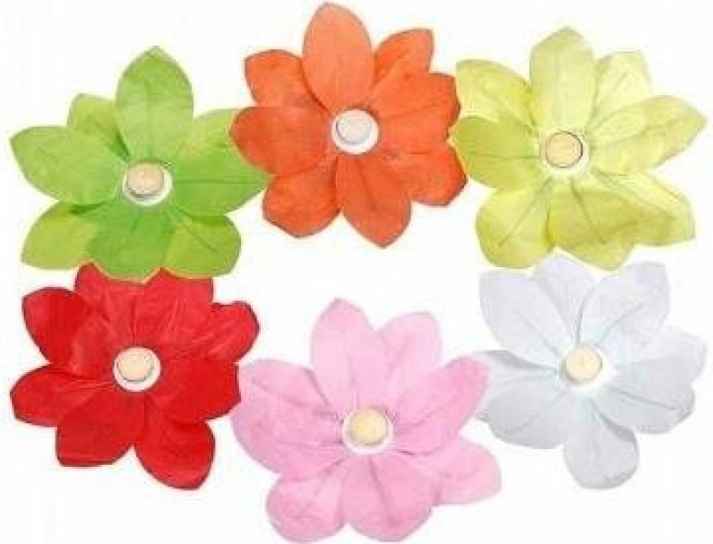 Popis: Okvětní lístky lampionu jsou vyrobeny z barevného poloprůhledného papíru, jsou vyztužené jemným drátkem, který slouží k tvarování květu. Na spodní části Plovoucího Lampionu je impregrovaná plovoucí podložka, která zabezpečuje vznášení lampiónu na hladině. Součástí balení je čajová svíčka. Délka hoření je minimálně 120 minut. Na hladině vydrží i několik dní.