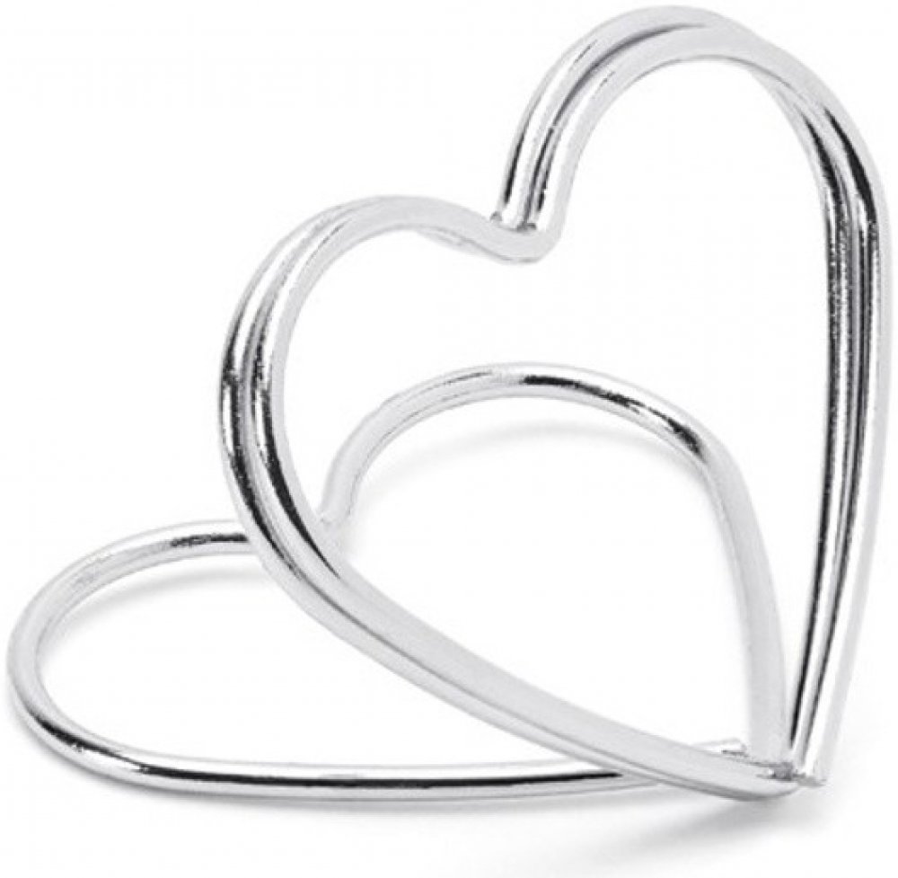 Krásné stojánky ve tvaru srdce ve stříbrné barvě na svatební stoly. Jsou velmi snadno použitelné - stačí otevřít okraje srdce a vložit kartičku se jménem. Díky kovu jsou velmi stabilní a vypadají elegantně na svatební tabuli.