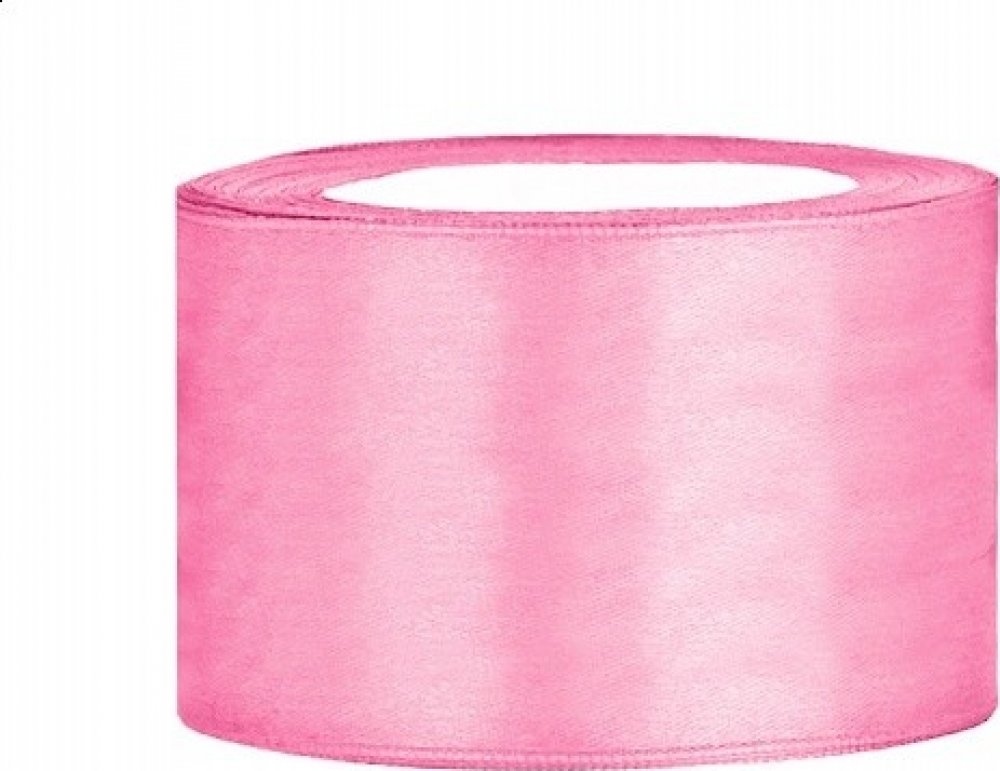 Saténová růžová široká stuha o šířce 3,8 cm a délce 25 m.