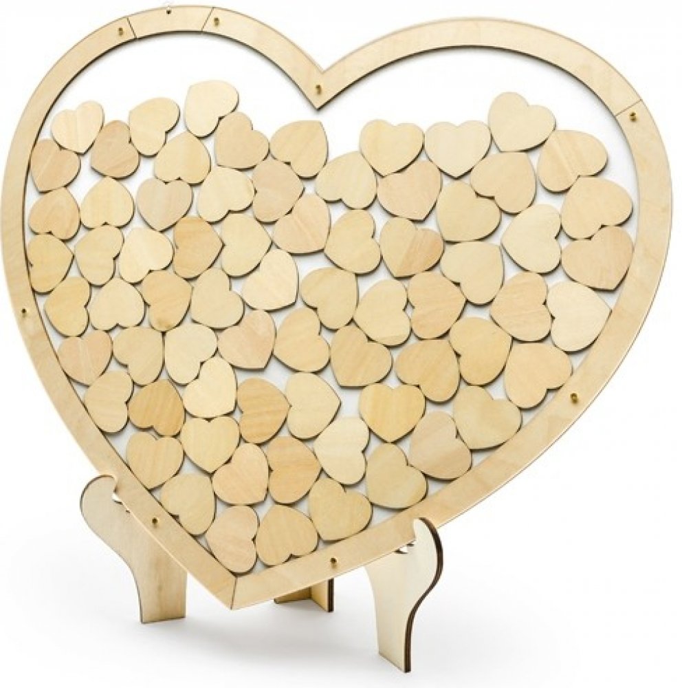 PartyDeco Svatební dřevěná kniha hostů obraz srdce