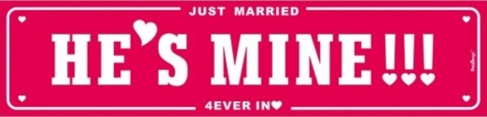 Svatební SPZ s nápisem HE´S MINE!!! na výzdobu auta ženicha, aby nikdo nepochyboval, že je nevěstin :). SPZ je vhodná pro výzdobu auta jako dekorace na svatební focení.