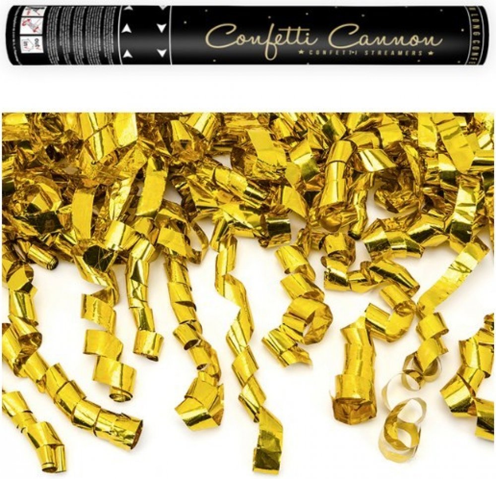 PartyDeco Vystřelovací konfety Party zlaté serpentýny 40 cm