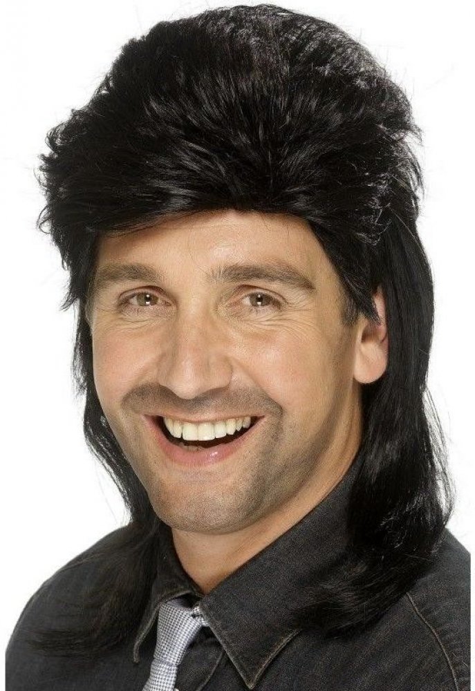 Tato černá paruka střižená ve stylu legendárního mužského účesu tvz. mullet, oblíbeného v období 80.tých a 90.tých let se skvěle hodí na retro party.