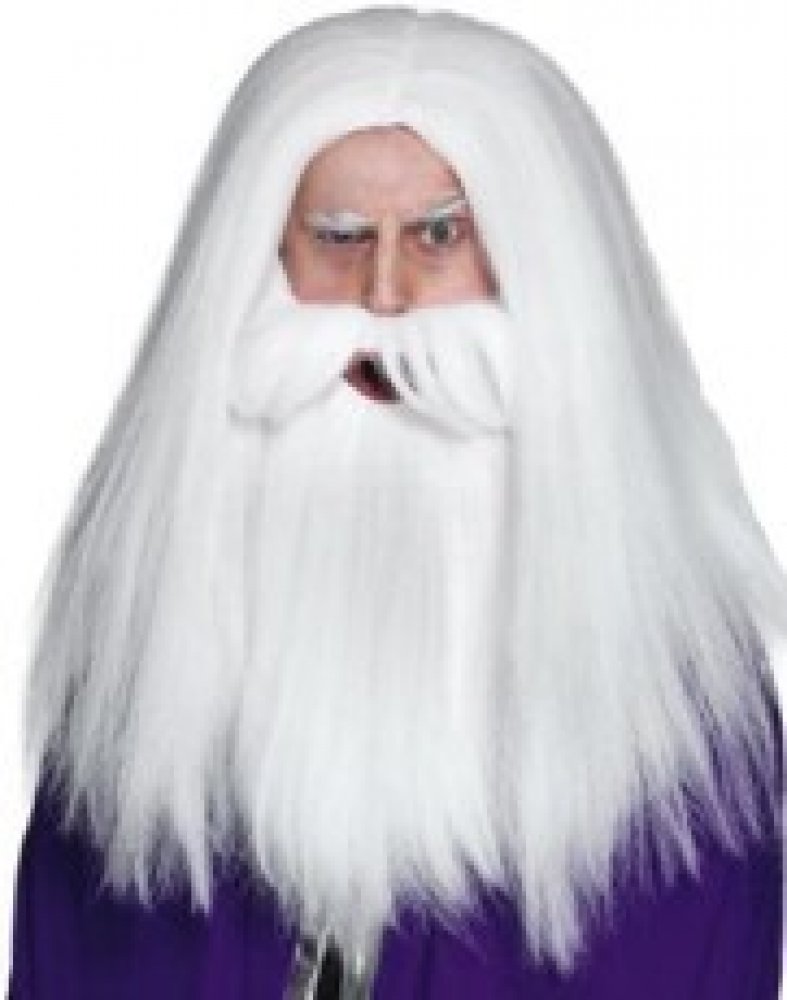 Sada obsahuje bílou dlouhou paruku a bílý plnovous pro Mikuláše, kouzelníka nebo čaroděje.