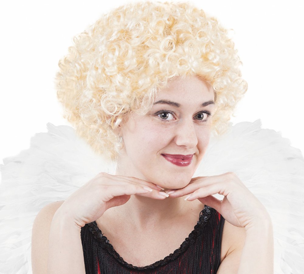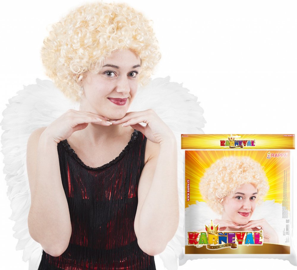 Půvabná světlá, blonďatá, karnevalová paruka krátká. Skvělý doplněk karnevalového kostýmu anděl. Staň se hvězdou karnevalového večírku!