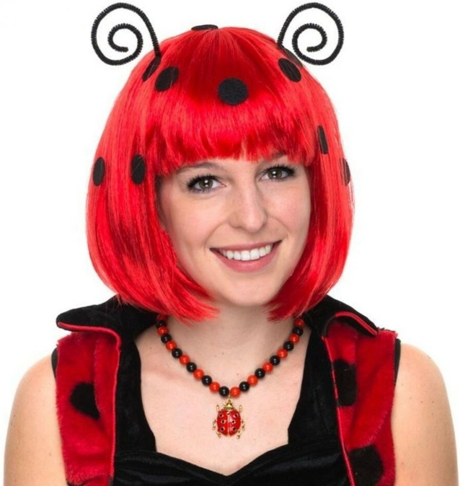 Karnevalová paruka - černočervená s puntíky a tykadlama