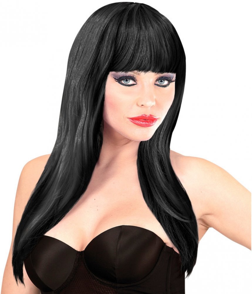 Dámská párty paruka Vogue. Efektní doplněk vašeho outfitu. S touto parukou budete jiná osobnost. Barva: černá Materiál: 100% polyester Určeno pro: dámská Typ paruky: dlouhá s ofinou
