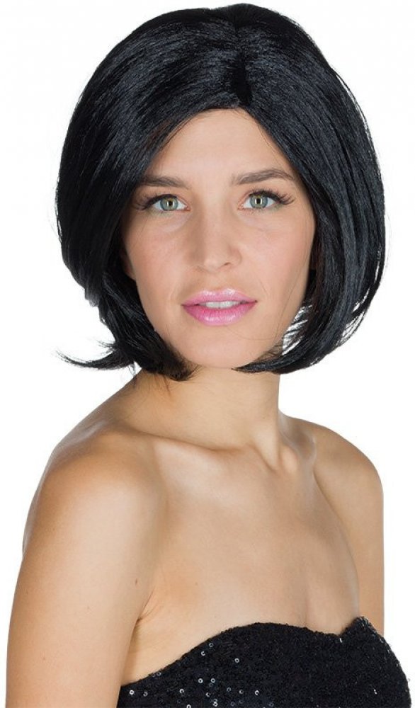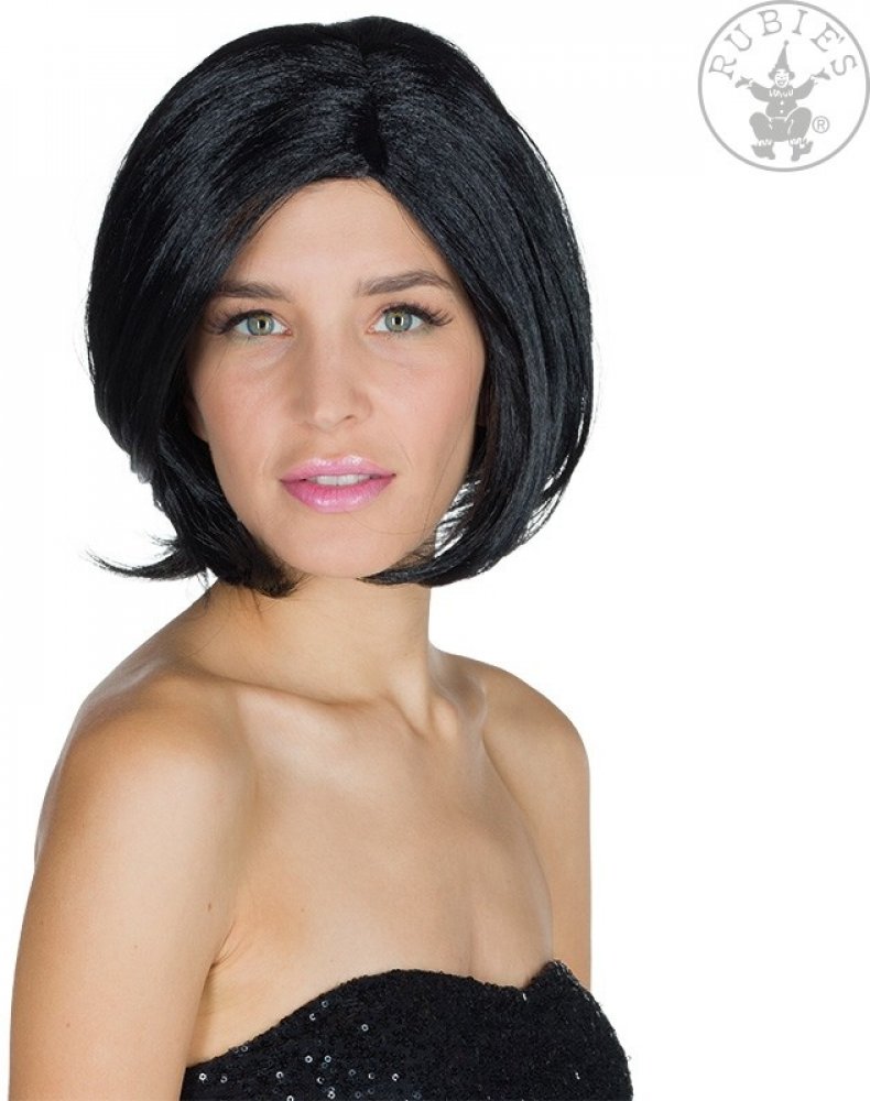 Černá paruka s pěšinkou uprostřed.