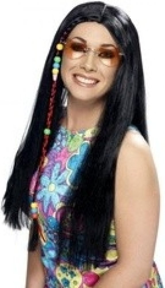 paruka hippísačka s copem černá hippy party