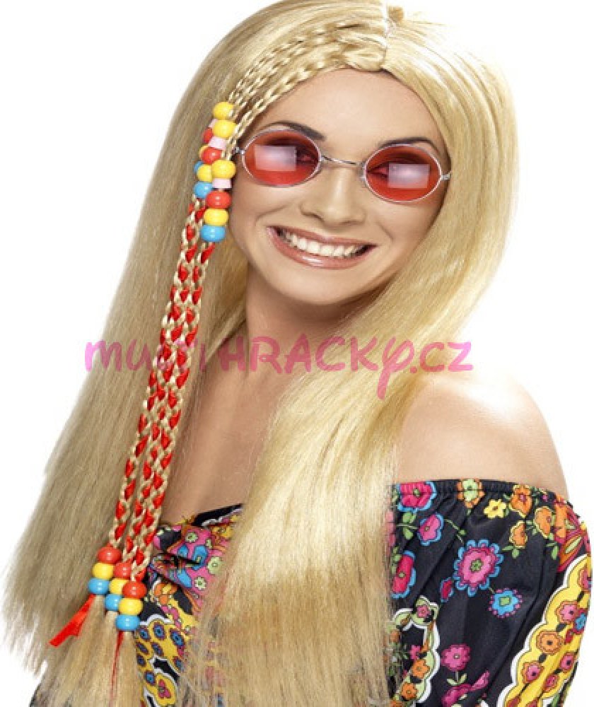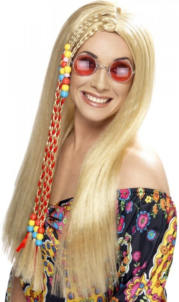 Dlouhá paruka Hippies blond s korálky je neodmyslitelnou součástí každého hippie kostýmu z 60.let. Pokud se chystáte na tematický večírek v tomto stylu a máte krátké vlasy, nemusíte zoufat. Pomocí této paruky si můžete během pár minut vykouzlit typický hippie účes, kterým svůj outfit doladíte. Karnevalovou paruku z dlouhých blond vlasů zdobí copánky a barevné korálky.
