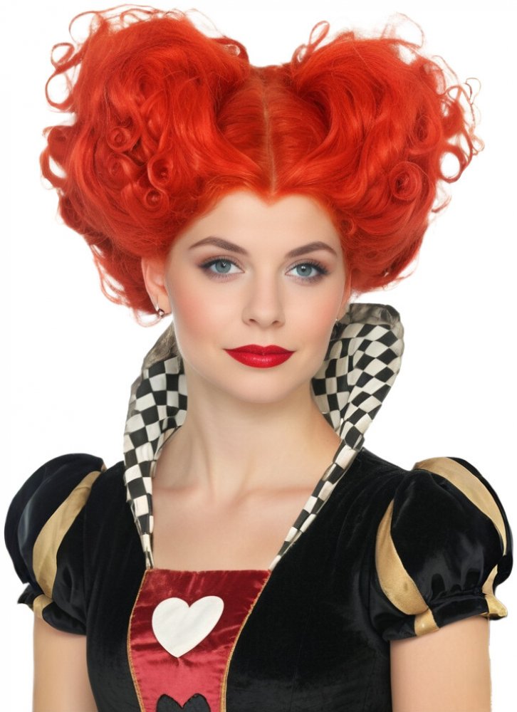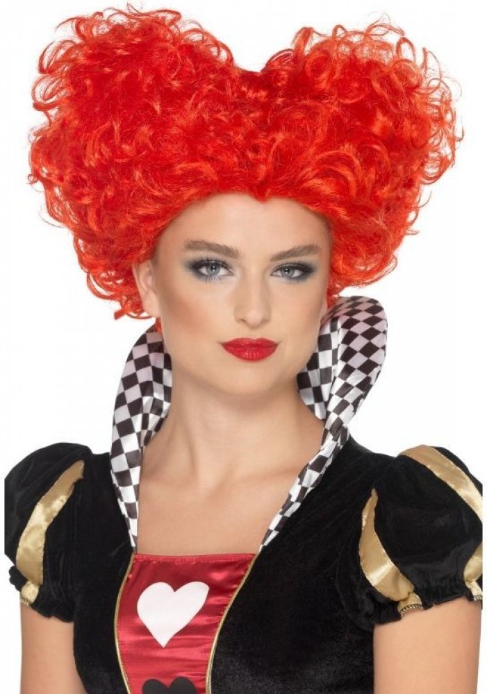 Červená vyčesaná paruka se skvěle hodí na halloweenskou party ke kostýmu Srdcové královny z Alenky v říši divů.