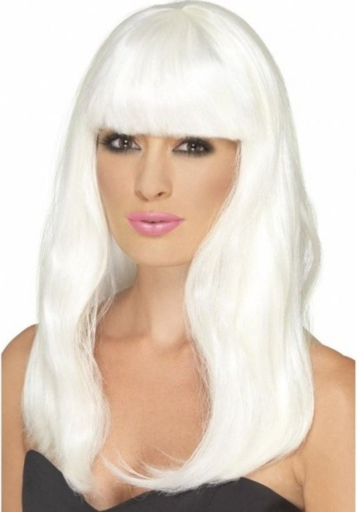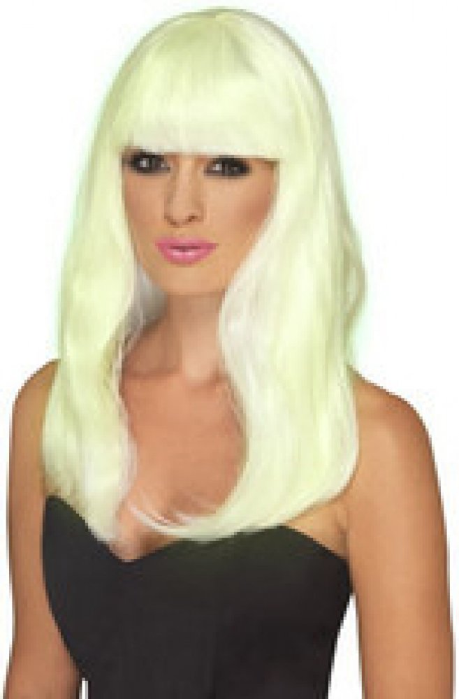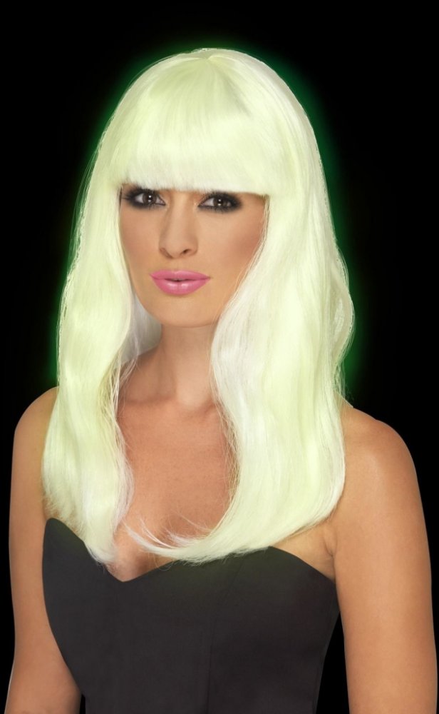 Fantastická bílá dlouhá paruka s ofinou, která svítí ve tmě.