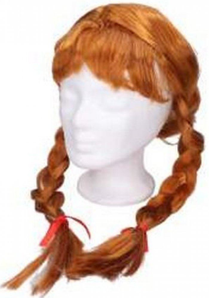 Zrzavá paruka s pramínkem a zapletenými copánky bude skvělým doplňkem na tématický večírek nebo karneval! Vlasy zrzka.
