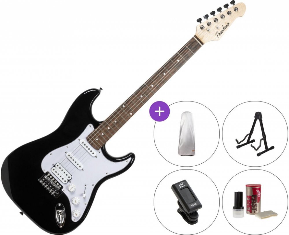 Elektrická kytara - ST společnosti Pasadena. Všestranná kytara je vyrobena z kvalitních materiálů - lipové tělo, krk vyrobený z Kanadského javoru a palisandrový hmatník (model se vyrábí i s javorovým hmatníkem). Kytara je vybavena 2 single snímači a humbuckrem, které zajišťují vynikající plný tón v celém frekvenčním rozsahu.• Tělo: lípa, masiv