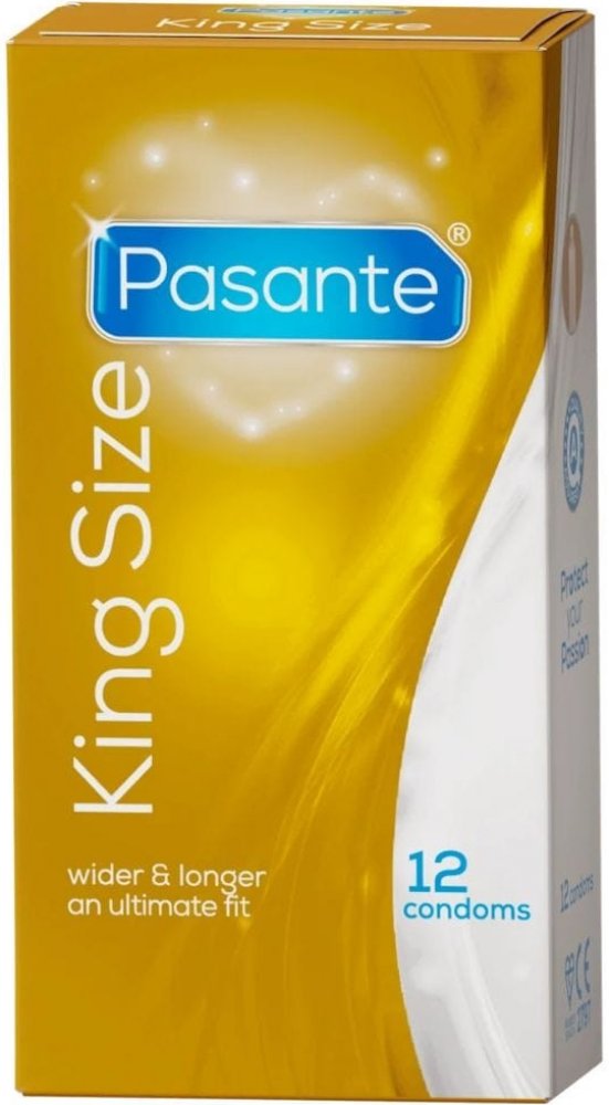 Pasante King Size kondomy jsou vyrobeny z přírodního latexového kaučuku a mají hladkou strukturu, která zajišťuje příjemný pocit během používání. S nominální šířkou 60 mm a délkou 205 mm jsou o 10 % větší než standardní kondomy Pasante, což je činí ideálními pro muže, kteří potřebují větší velikost. Kondomy jsou průhledné, potažené normálním lubrikantem a zakončené rezervoárem pro větší bezpečnost...