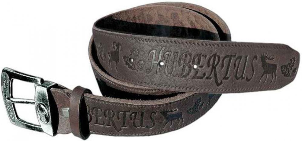 specifikace: kvalitní lovecký kožený pásek s klasickou kovovou pěkně zdobenou přezkou, na opasku je vytištěn nápis HUBERTUS s obrázky jelena a muflona. Vhodný jako dárek pro myslivce, ale i na b...