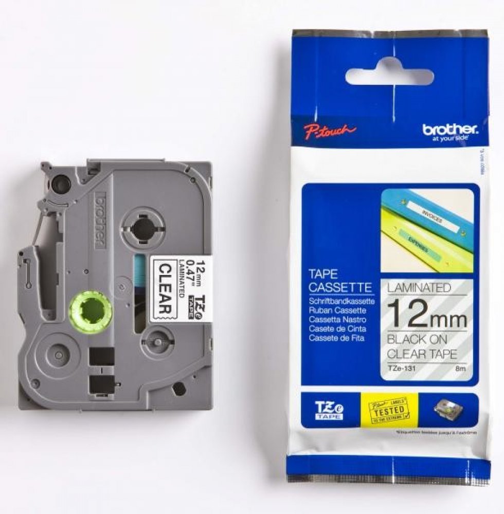Páska do štítkovače Brother TZe-131, 12mm, černý tisk/průsvitný podklad