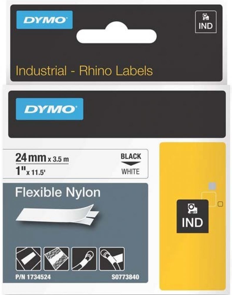 Dymo originální páska do tiskárny štítků, Dymo, S0773840, černý tisk/žlutý podklad, 3.5m, 24mm, RHINO nylonová flexibilní Speciální profi D1 páska Dymo štítky DYMO D1 byly navrženy speciálně pro zařízení DYMO® LabelManager™ a LabelPoint™. Nabízejí možnosti výkonu a výber, které postačí k jakémukoli úkolu zahrnujícímu štítkování, ať už se jedná o použití v interiéru či exteriéru, v kanceláři, v dílně, v obchodě nebo na jakémkoli jiném pracovišti. Dymo štítky jsou baleny v praktických kazetách - kazetu stačí vložit do štítkovače a můžete se pustit do štítkování. Bezproblémové odlepení usnadňuje systém /"Easy peel/". Technologie termotisku - není vyžadována žádná náplň inkoustu ani toner, barvicí páska je součástí kazety D1 / D1 Rhino™ . Vhodné Dymo štítky můžete vybrat ze standardních , flexibilních, permanentních štítků a dalších štítků Rhino™. Dymo štítky Rhino™ byly vyvinuty pro použití v nepříznivých podmínkách a jsou odolné proti mechanickému poškození, výkyvům teplot, chemikáliím, rozpouštědlům, vodě a UV záření. Výrobce DYMO® nabízí několik specifických materiálů pro různá použití. Všechny se vyznačují silnou přilnavostí a pečlivě vybranými materiály pásky, které zajišťují tisk výborné kvality a vysokou odolnost.