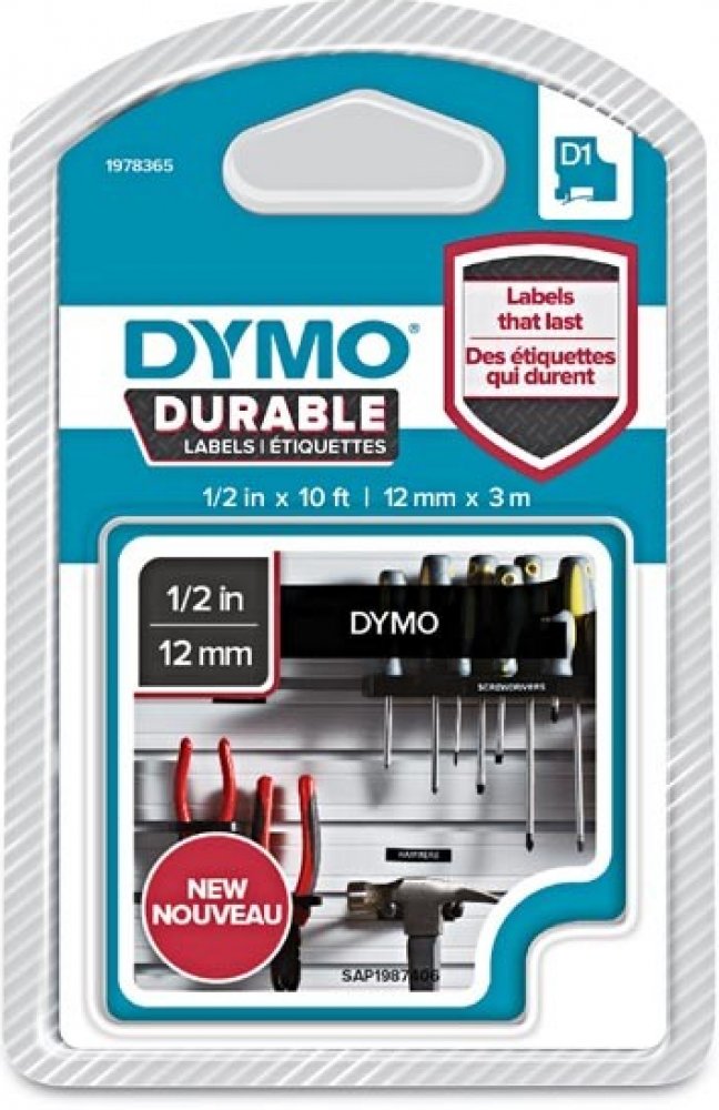 Páska Dymo D1 12 mm x 3m, bilý tisk/černý podklad, Durable, 1978365