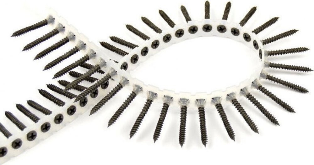 Balení: 800 ks. Používají k upevnění sádrokartonových desek k dřevěné konstrukci.Páskované šrouby lze použít ve většině značek – např.: Makita, Bosch, Senco, Protool, Spit & Paslode, Milwaukee, Graber Super Drive, Hitachi, Hilti, Ryobi, Quick Drive a dalších.