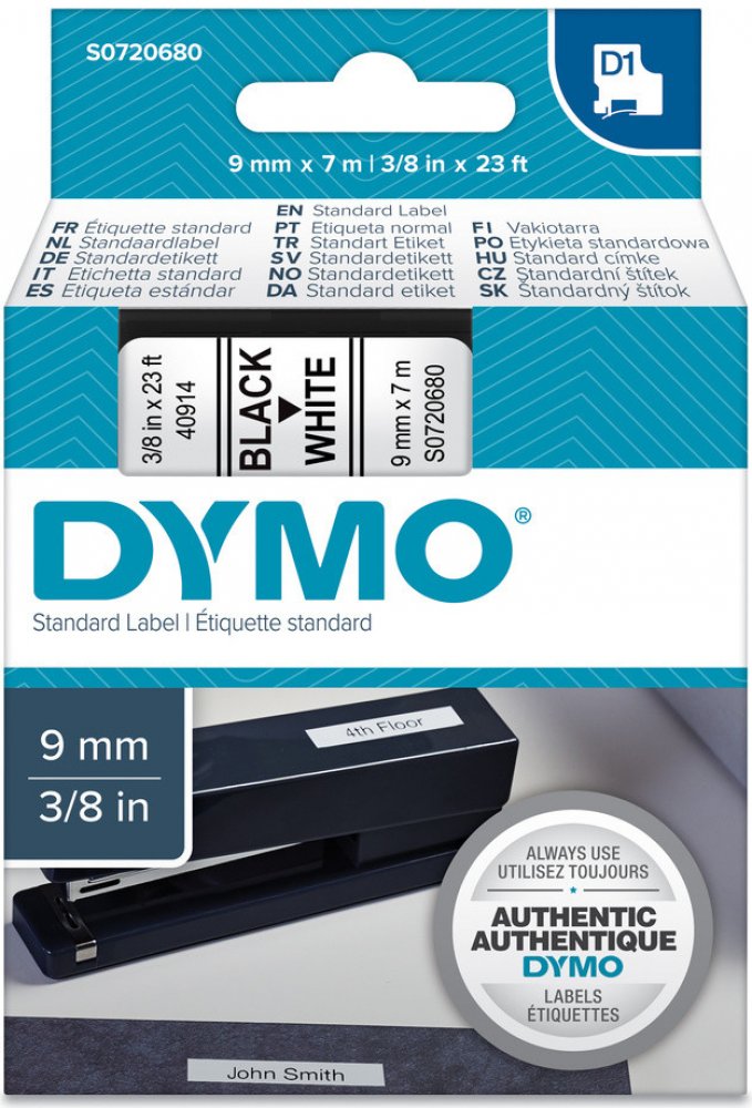 Pásky D1 standardní - 9 mm x 7 m / černý tisk / bílá páska, 117150