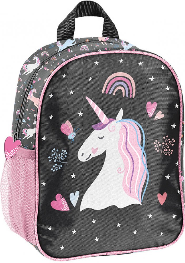 Tento malý batoh do školky má jednu přihrádku a boční síťovanou kapsu, kam můžete uložit malou láhev, láhev s vodou nebo termosku. Batoh je vybaven nastavitelnými popruhy, díky kterým batoh dokonale přizpůsobíte výšce dítěte. Batoh má pohodlné ucho na přenášení a ozdobné popruhy. Ideální pro menší děti, na školní výlet, mimoškolní aktivity nebo do školky.