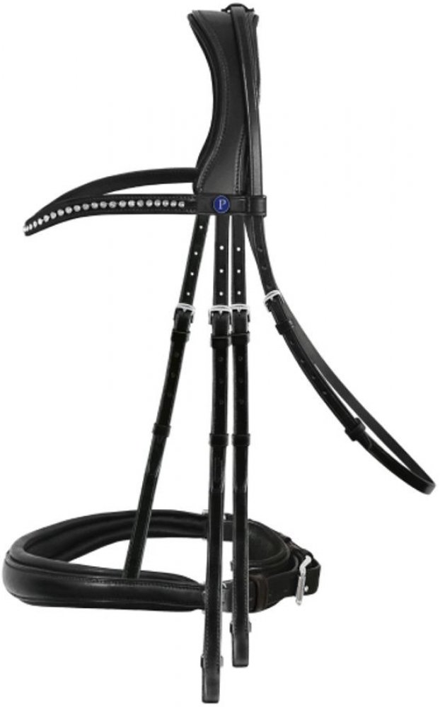 Uzda Passier Dream je anatomicky tvarovaná, mimořádně měkký nátylník zajišťuje optimální rozložení tlaku. Nánosník je měkce vypodložený a taktéž anatomicky tvarovaný. Jemně tvarovaná čelenka zdobená kamínky, které dokonale ladí s kováním. Vyrobena je z nejjemnější kůže Passier.