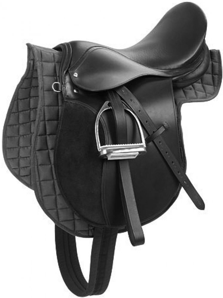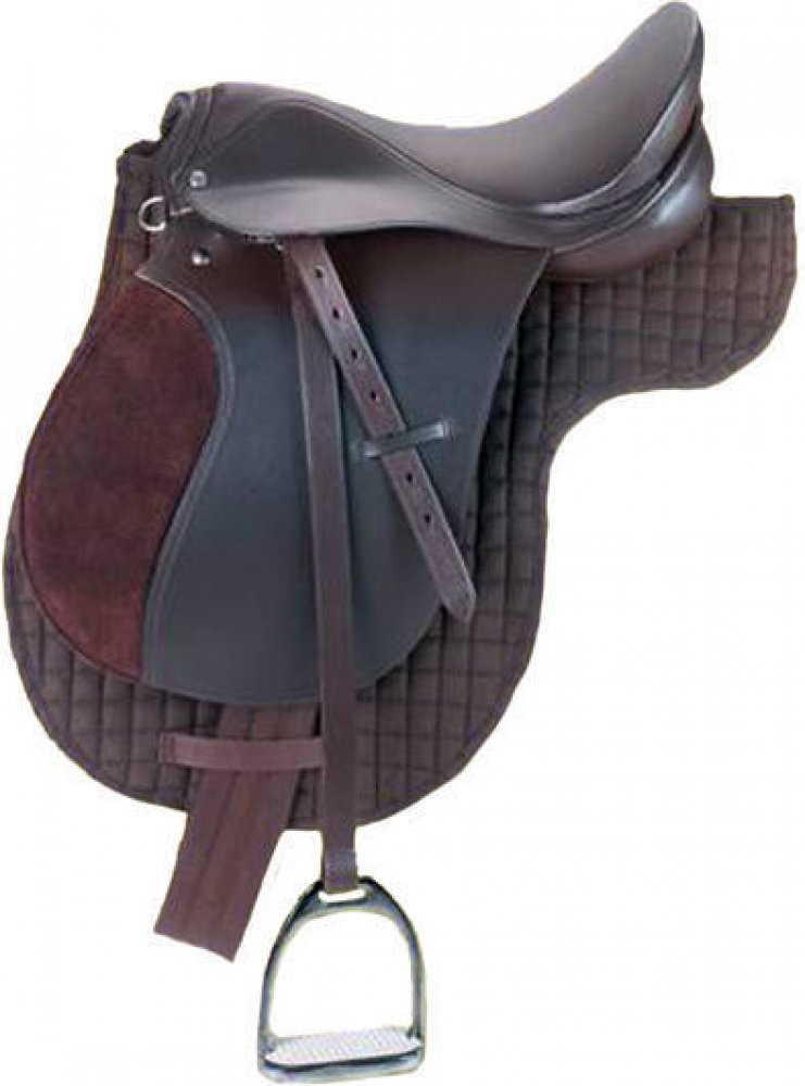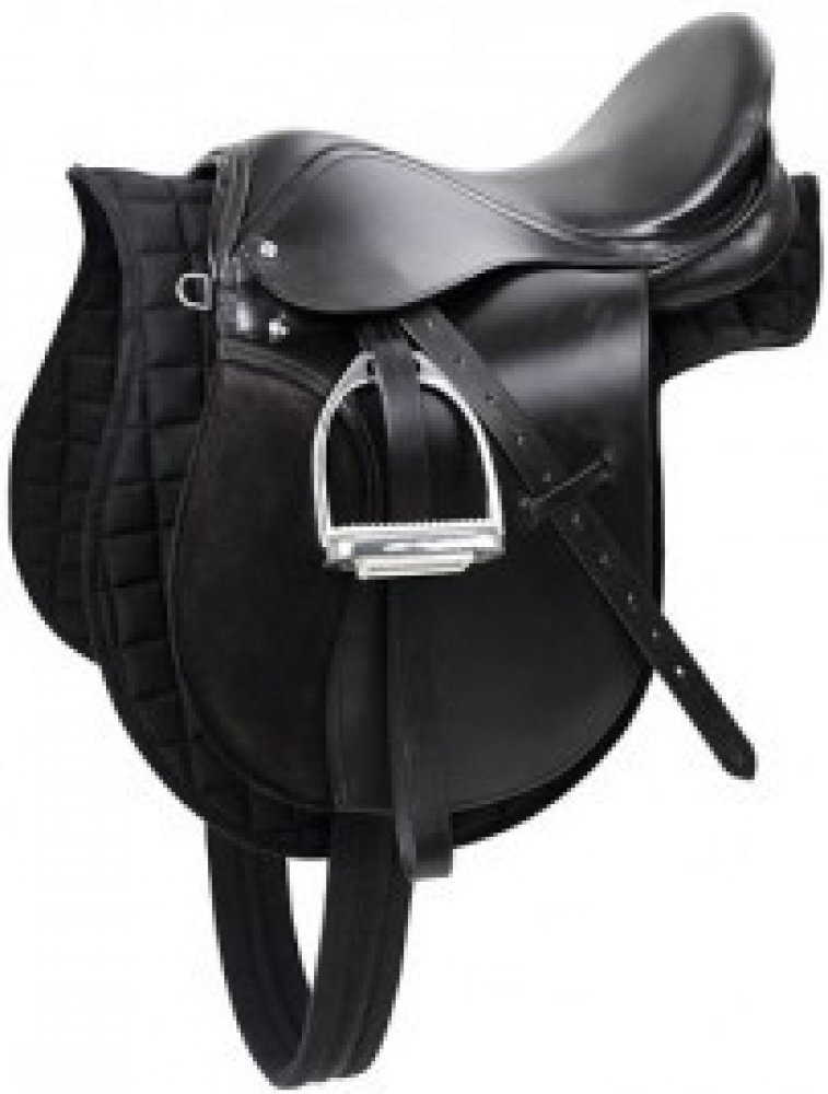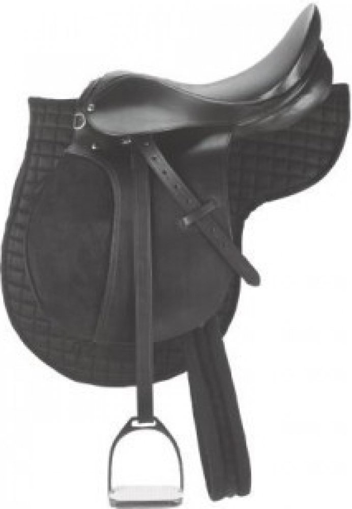 Cenově výhodné kožené univerzální sedlo dodávané včetně příslušenství: vykrojená dečka, kožené třmenové řemeny, niklované třmeny s bílou gumou a podbřišník. K sedlu s posedlím 16" je dodáván podbřišník v délce 95 cm, u sedel s posedlím 17,5" je podbřišník 125cm.Sedlo v černé barvě má střední komoru, sedlo v hnědé barvě se dodává s širší komorou, je tedy vhodné koně s širším kohoutkem. Tabulka variant: kat. č. využití velikost podsedlí komora barevná varianta 4970 pony 95 cm 40,5 cm (16″) 14 cm černá 4970a universální 125 cm 44,5 cm (17,5″) 15 cm černá 4970b haflinger 125 cm 44,5 cm (17,5″) 18 cm hnědá
