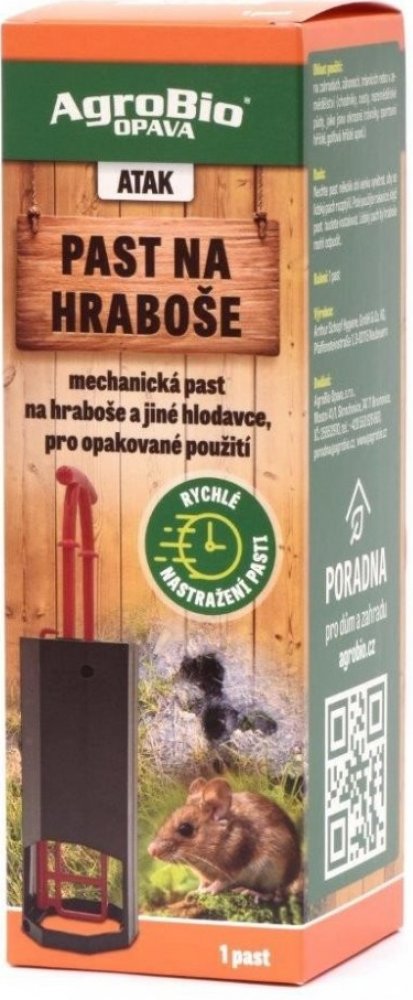 Návod k použití:Po nalezení chodbičky hraboše vykopejte malým ručním rýčem díru do půdy (do chodbičky). Obvykle chodbičku najdete mezi dvěma kopci. Jakmile vykopete vhodnou díru, vložte past na hraboše do průchodu. Pro aktivaci pasti, vytáhněte rukojeť pasti. Ujistěte se, že otvory pasti jsou zarovnané se směrem tunelu hraboše, a že otvory a průchod tunelem jsou v rovině. Po vložení a napnutí pasti, se ujistěte, že je chodbička opět dostatečně zakrytá, aby hlodavce nevyrušilo oslnění slunce nebo vítr. Zda se odchyt povedl, poznáte podle polohy rukojeti. K tomu nemusíte past vytahovat ze země.