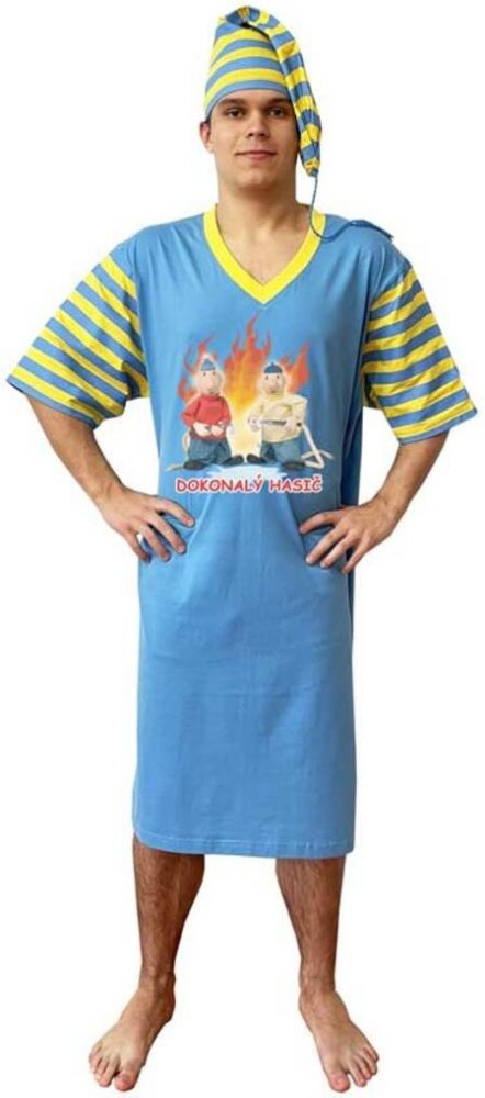 Noční košile - Pat a Mat - Dokonalý hasič - modrá Barva: Modrá, Velikost: L od výrobce v kategorii Heureka.cz | Oblečení, obuv a doplňky | Pánské oblečení | Pánské noční prádlo a župany | Pánská pyžama za skvělé ceny na e-shopu Levnedarky.cz