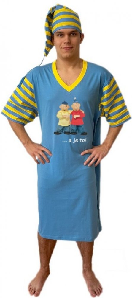 Veselá pánská noční košile s čepicí Pat a Mat s motivem klasického gesta.