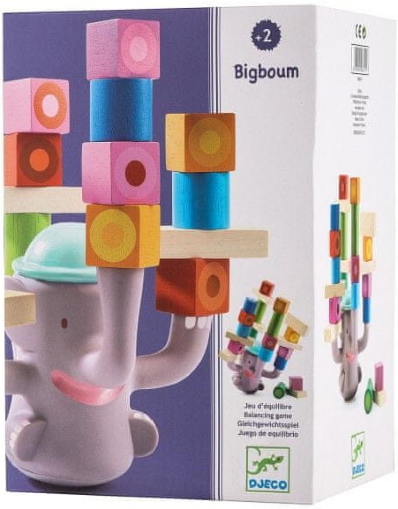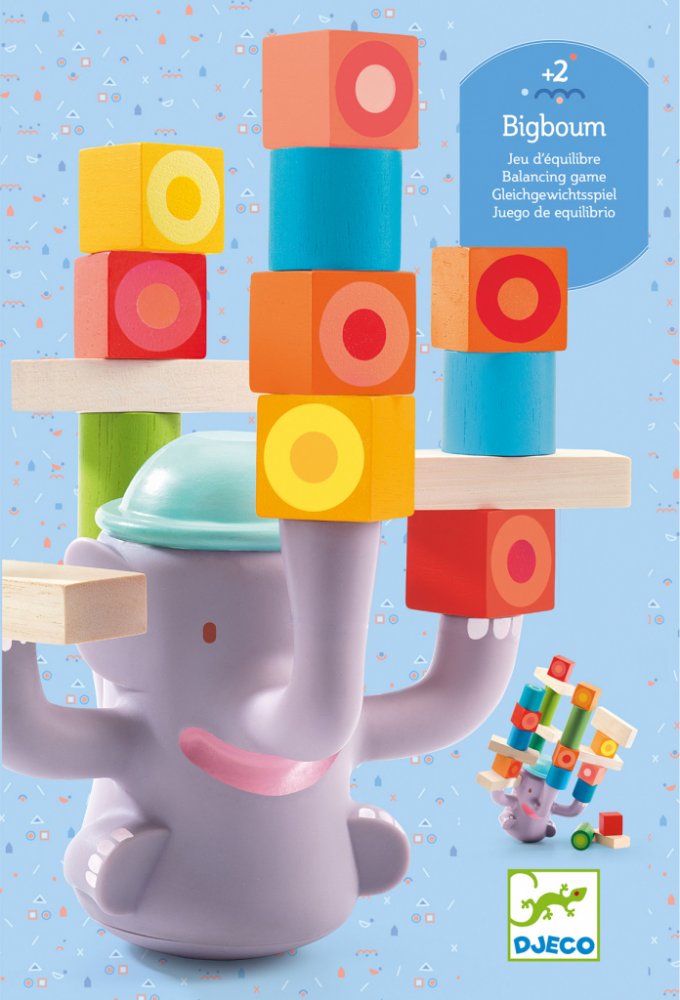 Dovednostní hra složená Bumbác je složení z houpacího slona a barevných dřevěných kostiček různých tvarů. Dítě naskládá kostičky na slona a dbá na to, aby byly dobře vyvážené. Dejte si pozor na kousek navíc, který převrátí všechno vzhůru nohama!