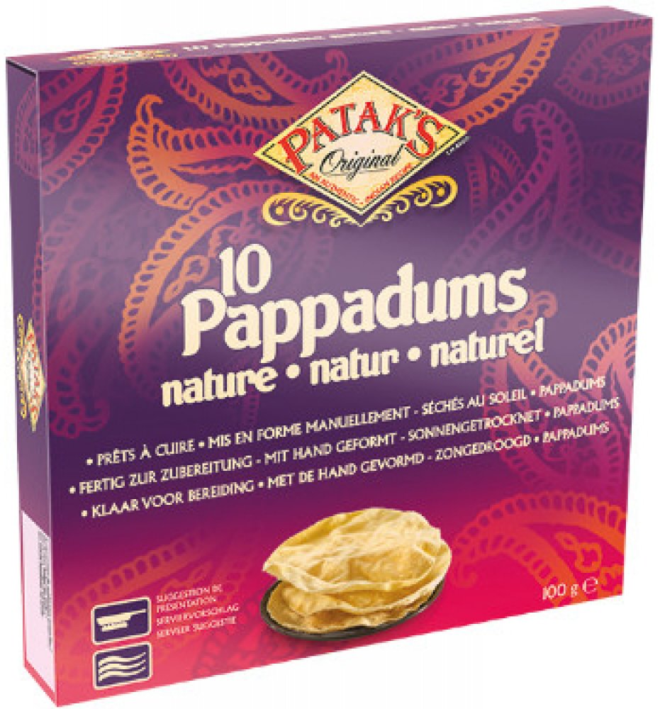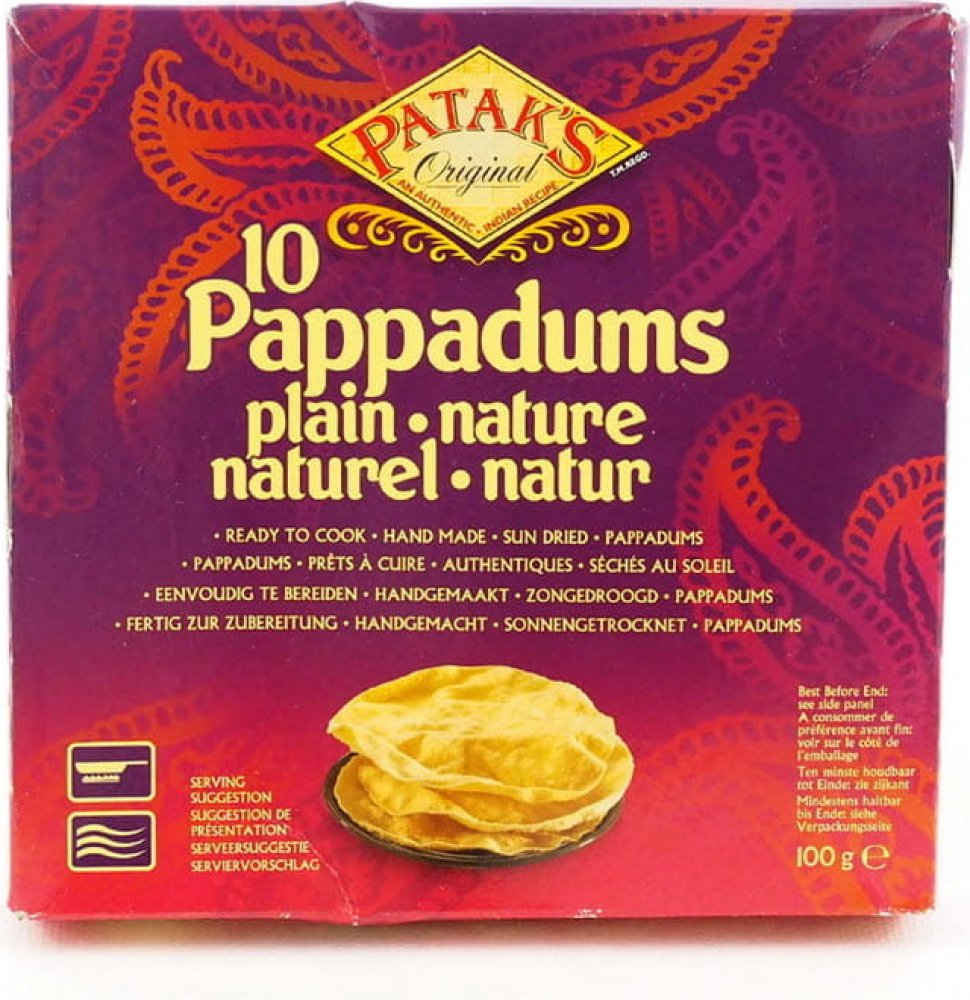 Papadam (mezi jinými variantami také hláskovaný poppadom), také známý jako papad, je občerstvení, které pochází z indického subkontinentu. Těsto z černé gramové fazolové mouky se buď smaží, nebo se vaří suchým teplem (překlopeným otevřeným plamenem), dokud není křupavé. Používají se i další mouky z čočky, cizrny, rýže, tapioky, jáhel nebo brambor. Papadam se obvykle podává jako příloha k jídlu v I...