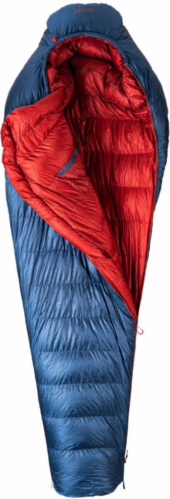 Celý hlavní zip je samozřejmě podložený peřím vyplněnou izolačné légou, aby skrz něj neunikalo drahocenné teplo. Díky konstrukci s rovným zipem je celé zateplení efektivnější a používání zipu jednodušší. Kolem ramen je pak další zateplovací léga, stahovací, konkstruovaná tak, aby nebylo potřeba žádných suchých zipů nebo patentků.