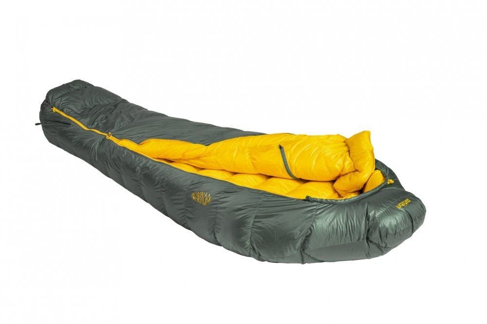 Vně i uvnitř spacáku používáme špičkový materiál Pertex Quantum s voděodpudivou DWR úpravou (32 g/m2). Tento funkční materiál je i ekologicky šetrný. Je vyrobený ze 100% recyklovaného nylonu.