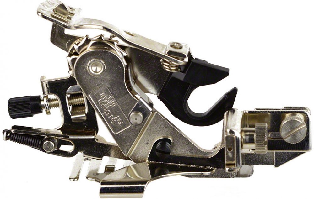 Řasící patka Janome. Patka pro nabírání látky na kanýry a volány. Látku bohatě nařasí a načechrá. Je určena pro všechny typy strojů Janome, jak s rotačním, tak s CB chapačem.